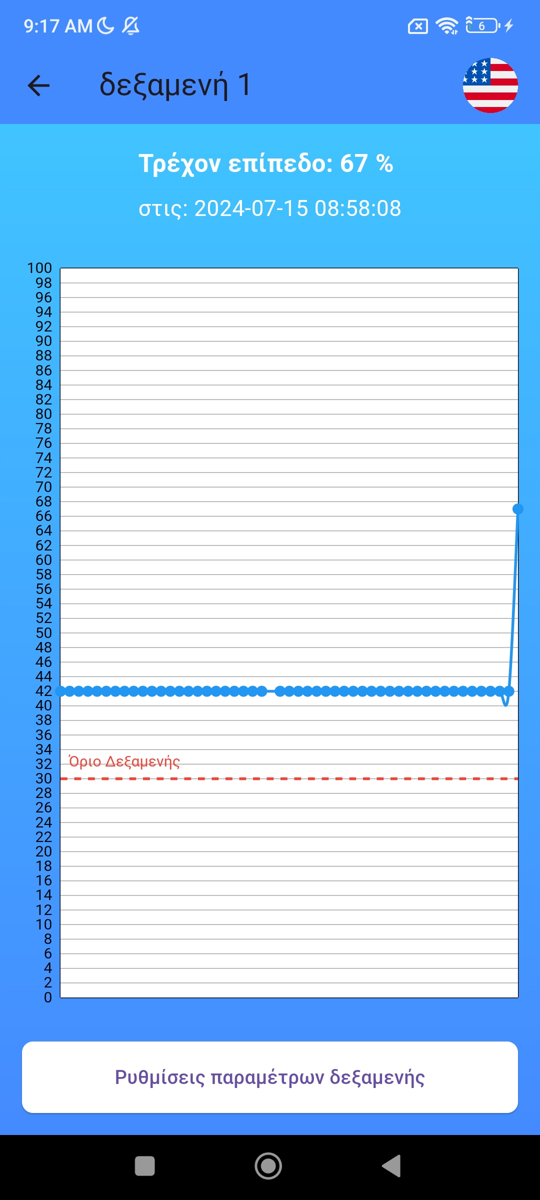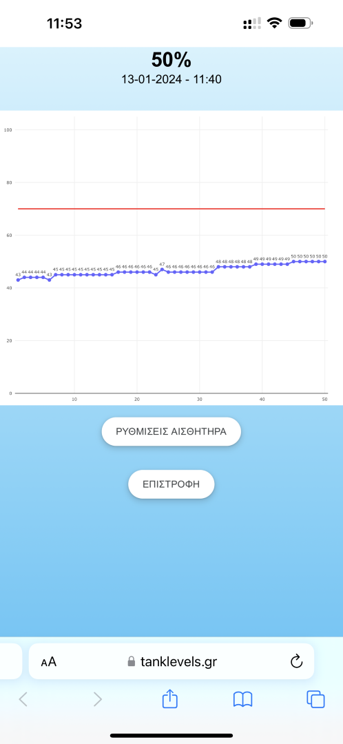 Με την εγκατάσταση έχετε πρόσβαση στην εφαρμογη, για προβολή στάθμης και ρυθμίσεις ειδοποιήσεων.